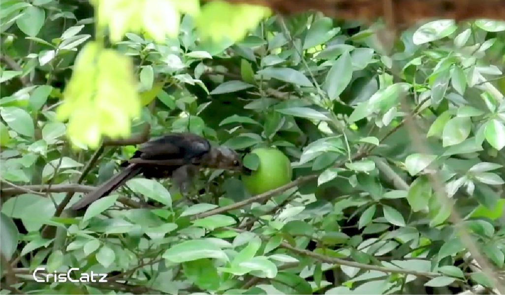 Un pájaro k’a’aw (zanate mayor) fue captado en vídeo bebiendo jugo de naranja directamente de una fruta que aún se encontraba en la rama. El ave metía la cabeza en la naranja, picoteaba el interior y echaba la cabeza hacia atrás, para beber el líquido.