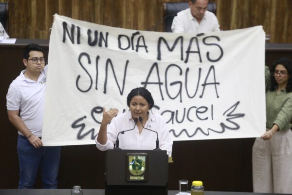 Al hacer uso de la tribuna Legislativa, la diputada, Larissa Acosta, abundó en la urgencia de que el Ejecutivo Estatal, voltee a ver a los ciudadanos, que sufren la falta de agua en sus hogares; y aplique la directriz 5 del Plan Estatal de Desarrollo, que habla de impulsar una infraestructura robusta y adecuada que permita el correcto suministro hídrico.