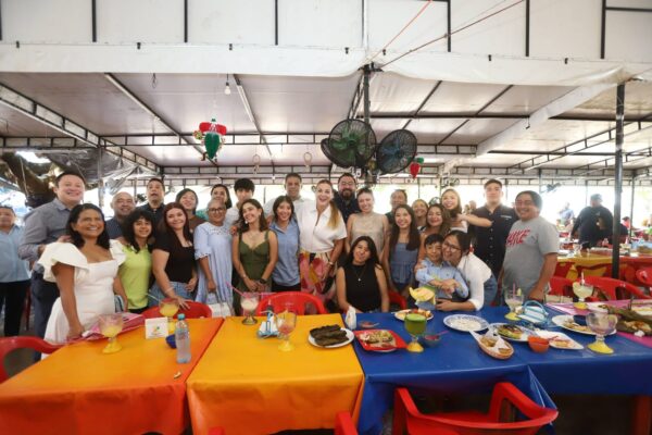 Mérida Yucatán, lunes 8 de septiembre de 2025.- En un desayuno regional en el mercado de Santa Ana, la presidenta municipal Cecilia Patrón Laviada deseo éxito a las y los jóvenes meridanos que estudiarán gastronomía becados durante tres años en la Escuela Profesional Esprodouro de São João da Pesqueira, Portugal.