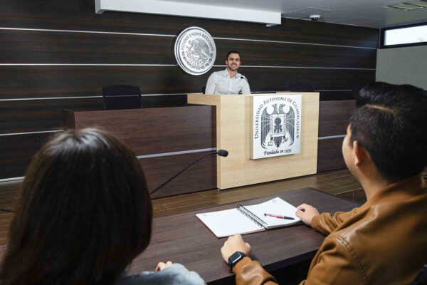 Y para complementar tu formación, la UAG tiene laboratorios jurídicos, simuladores de juicios y recursos tecnológicos avanzados para una formación práctica y efectiva, uno de ellos es la Sala de Juicios Orales, un lugar donde podrás aprender en un entorno muy parecido al real.
