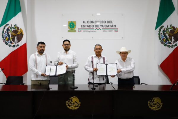 Mérida, Yucatán a 10 de septiembre de 2025.- El presidente de la Junta de Gobierno y Coordinación Política del Congreso, diputado Wilmer Manuel Monforte Marfil y el presidente de la Mesa Directiva, diputado Mario Alejandro Cuevas Mena, recibieron una iniciativa propuesta por el Gobierno del Estado que busca reformar la Ley del ISSTEY en materia de seguridad social para garantizar a las y los trabajadores pensiones justas, seguras y sostenibles.