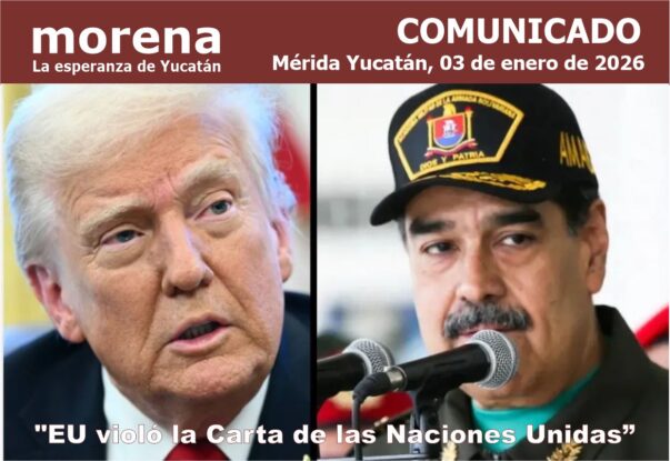 No hay nada más valioso que la vida, la libertad y la seguridad de las personas, pilares esenciales de la soberanía de las naciones. Desde este postulado morenista, el Comité Estatal de Morena en Yucatán expresa su firme rechazo ante las acciones militares emprendidas unilateralmente por las fuerzas armadas de Estados Unidos de América en contra de la soberanía de la República Bolivariana de Venezuela, contra sus instituciones y sobre todo contra su pueblo.