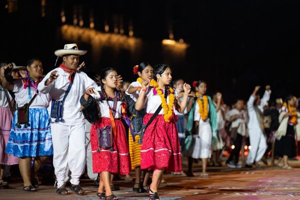 Dicho montaje escénico, que partió desde Palacio Nacional, ideado por Jesusa Rodríguez, con la dirección musical de Roberto Rentería Yrene, titular del SNFM, dio muestra de cómo a través de la cultura y la práctica de disciplinas artísticas se origina la comunión y se impulsa la transformación de la sociedad, sin dejar en el olvido las raíces, semillas y frutos de sus culturas originarias. Niñas, niños y jóvenes de comunidades indígenas compartieron la riqueza de sus lenguas y convivieron, en uno de los escenarios más grandes del país.