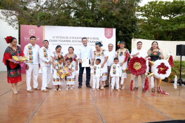 La muestra se engalanó con interpretaciones de temas emblemáticos como “K’imbesaj, k’imbesaj” (Navidad), “Chowak xikin tsíimin” (El burrito sabanero), “Sujuy síijil” (Blanca Navidad), “Ko’one’ex ajkanane’ex” (Vamos pastores), “Xunáan Santana” (Señora Santana), entre otros, que fueron interpretados con gran sensibilidad y entusiasmo por los coros infantiles, mostrando el valor cultural y pedagógico del uso de la lengua originaria en contextos artísticos y comunitarios.