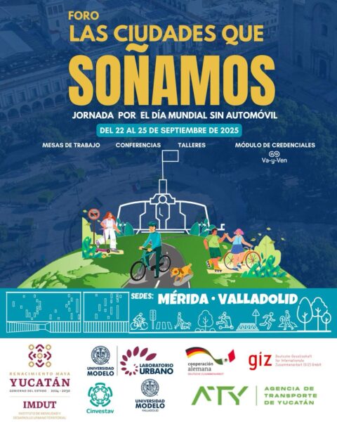 Mérida, Yucatán, a 20 de septiembre de 2025.- Del 22 al 25 de septiembre, Yucatán albergará el foro “Las ciudades que soñamos”, un espacio de encuentro que reunirá a especialistas nacionales, autoridades, académicos, organizaciones sociales y ciudadanía para reflexionar sobre el futuro de la movilidad y delinear acciones que permitan avanzar hacia ciudades más seguras, sostenibles e inclusivas.