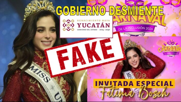 Mérida, Yucatán, a 6 de febrero de 2026.- El Gobierno del Estado de Yucatán informa de manera puntual y categórica que no es verdadero el contenido de publicaciones difundidas recientemente en redes sociales y algunos espacios digitales en las que se afirma la realización de un desfile o evento del Carnaval encabezado por la Miss Universo Fátima Bosch en la ciudad de Mérida.
