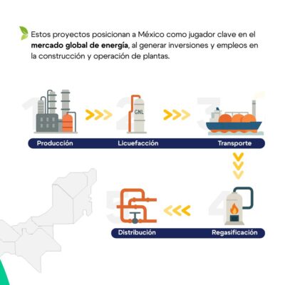 Para la Asociación Mexicana de Gas Natural (AMGN), los proyectos de GNL no se limitan a satisfacer la demanda interna de energía, sino que actúan como anclas estratégicas que impulsan del desarrollo de nuevos proyectos que transforman y fortalecen la infraestructura energética del país.