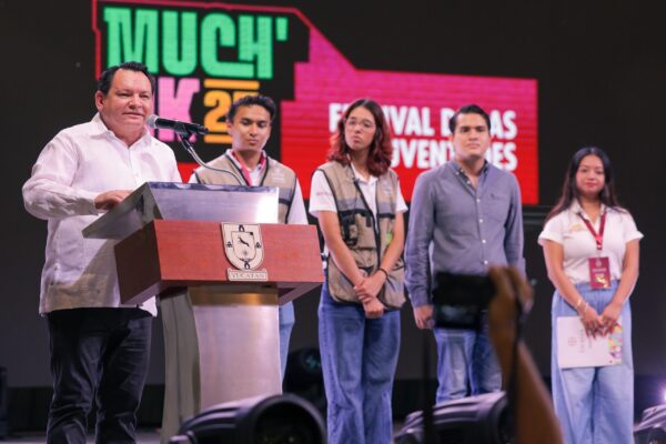 Mérida, Yucatán, a 19 de septiembre de 2025.- Como un espacio que reúne la cultura, el arte y la creatividad, el Gobernador Joaquín Díaz Mena encabezó la inauguración del Much’Ik Festival de las Juventudes, que del 19 al 21 de septiembre ofrecerá un amplio abanico de eventos y actividades para conectar, inspirar y reconocer el talento de las y los jóvenes de Yucatán.