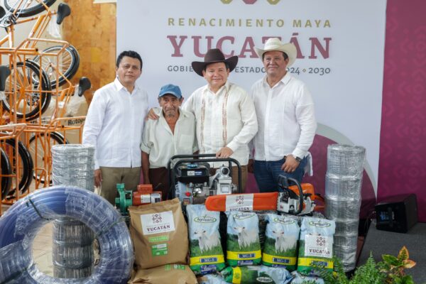 En ese mismo marco, acompañado por el titular de la Oficina de Representación en Yucatán de la Secretaría de Agricultura y Desarrollo Rural (Sader), Jorge Carlos Berlín Montero, el Gobernador encabezó la entrega de insumos del programa federal Fertilizantes para el Bienestar, con el cual se beneficiará a casi 27 mil productoras y productores de maíz en todo el estado. El programa contempla la entrega de 14,347 toneladas de fertilizante, que serán aplicadas en 47,800 hectáreas.