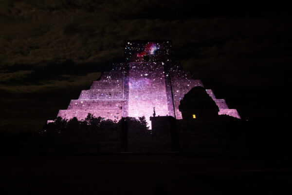 Antes de viajar al pasado con una proyección audiovisual de alto nivel, el imponente Templo de Kukulcán, en el corazón de Chichén Itzá, da la bienvenida a las y los visitantes bajo el cobijo de la luna.
