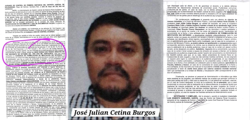 La “protección” que presume no solo se limita a políticos y altos mandos policiacos tal y como él mismo presume, sino también amedrenta a sus víctimas con integrantes de la delincuencia organizada que contrata en Quintana Roo, donde incluso ha despojado de propiedades a diversas personas de manera fraudulenta y falsificando documentos, como es el caso del septuagenario Cayetano Nieto Colín, quien fue despojado de un predio de 179 hectáreas, ubicado a unos 30 kilómetros del centro de Tulum, donde usó sellos y firmas de notarios fallecidos, retirados o fuera de funciones. Motivo por el cual, el próximo 17 de octubre enfrentará un proceso penal por los delitos de falsificación de documentos y uso de documento falso.