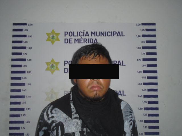 Mérida, Yucatán, sábado 28 de junio de 2025.- Elementos de la Policía Municipal de Mérida detuvieron a Gustavo A A.G. por intento de asalto en un comercio de la calle 65 por 50 y 52.