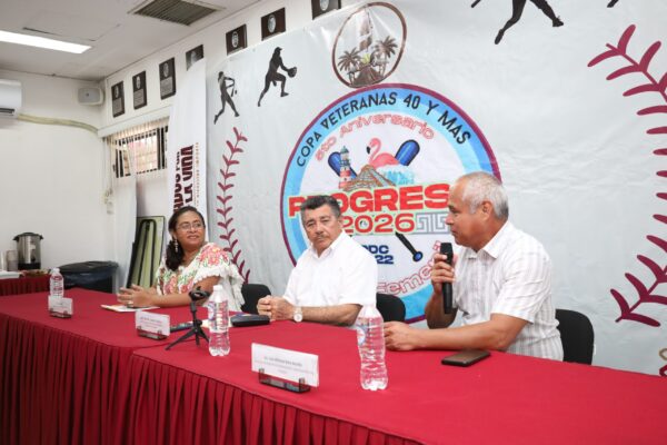 Progreso, Yucatán, a 2 de marzo de 2026.– Con el objetivo de promover el deporte femenil y dar a conocer los detalles de la quinta Copa Nacional de Trabajadoras Veteranas 40 y Más de Sóftbol, el H. Ayuntamiento de Progreso fue parte de la rueda de prensa organizada por el Instituto Nacional del Deporte de los Trabajadores.