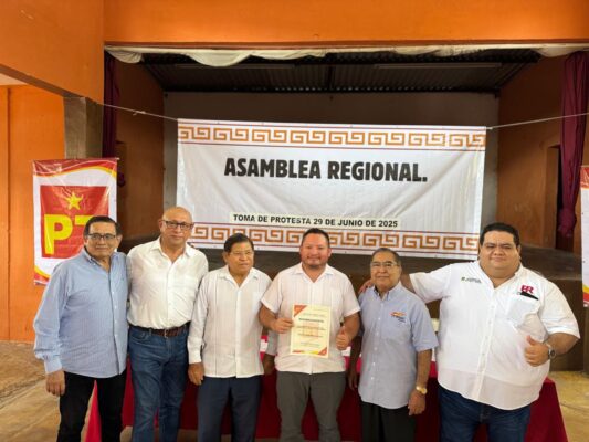 Ante Feliciano Moo y Can, subsecretario de Asuntos Agrarios del Ejecutivo del Estado, quien acudió a la reunión en representación del gobernador Joaquín Díaz Mena y el legislador Rosas Villavicencio, fue nombrado David Mena Cauich como coordinador estatal del Sectorial de Sindicatos y Organizaciones Obreras del PT.