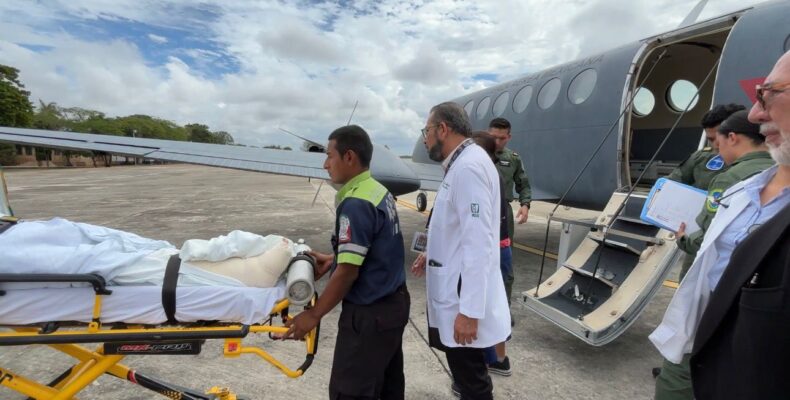 El director de la UMAE, doctor Roberto Abraham Betancourt Ortiz, junto a un equipo multidisciplinario se dirigió a la base militar número 8, en el aeropuerto internacional de la capital yucateca, “Lic. Manuel Crescencio Rejón”, donde el paciente arribó, acompañado por personal médico que lo atendió en todo momento, a bordo de un avión de la Secretaría de la Defensa Nacional (SEDENA), para continuar con su recuperación en esta unidad.