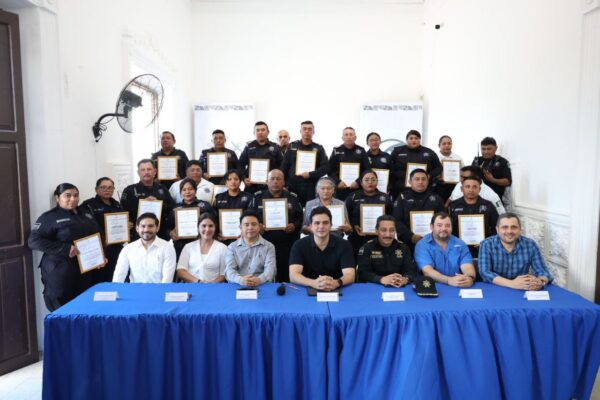 Progreso, Yucatán, a 10 de octubre de 2025.-Esta tarde, el alcalde Erik Rihani González entregó reconocimientos a más de 40 elementos de la Dirección de Seguridad Pública y Tránsito (DSPT) de Progreso, quienes concluyeron el curso “Formación Policial y Derechos Humanos”, impartido por la Comisión de Derechos Humanos del Estado de Yucatán (CODHEY). El objetivo de esta capacitación fue fortalecer una actuación policial más profesional, ética y respetuosa con la ciudadanía.