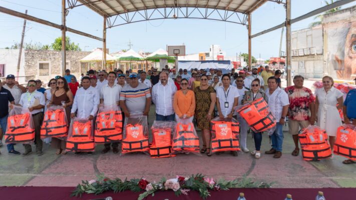 De manera extraordinaria, la Secretaría de Pesca y Acuacultura Sustentables de Yucatán (Sepasy) contribuyó con 180 chalecos del total entregado en esta primera jornada, como parte de la coordinación interinstitucional en favor del sector.