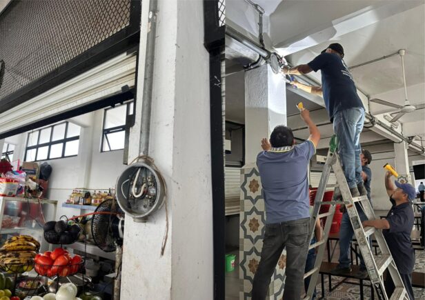 Mérida Yucatán a 23 de Marzo de 2026.- La seguridad de las personas que visitan los mercados y de sus locatarios es la prioridad del Ayuntamiento de Mérida, que informó la conclusión de los trabajos de reposición del cableado eléctrico en La Nueva Placita del Mercado Lucas de Gálvez, tras un corto circuito ocurrido el miércoles de la semana pasada.