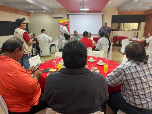 Mérida, Yucatán, a 2 de mayo de 2025.- La dirigencia estatal del PT se reunió este viernes con líderes sindicales de la entidad para conmemorar el Día Internacional de Trabajo; en su mensaje, el diputado petista, Francisco Rosas Villavicencio, destacó la importante labor de esas organizaciones para la vida productiva del país.