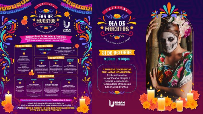 Umán, Yucatán, 14 de octubre de 2025.– El Ayuntamiento de Umán presentó la 2ª edición del Festival del Día de Muertos y Janal Pixán, una celebración que llenará de color, tradición y sentimiento el Parque Principal del 18 de octubre al 2 de noviembre de 2025.